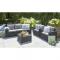 Chic et élégant, le salon de jardin gris en résine de synthèse donnera un look contemporain à votre terrasse ou votre jardin. Les différents éléments peuvent être placés à votre guise, ce qui permet différentes variantes de positionnement. Il se compose d’un canapé 3 places, de deux fauteuils agrémentés de coussins gris déhoussables ainsi que d’une table basse. Les coussins d’assise mesurent 7,5 cm de hauteur et les coussins de dossier sont composés de 600 gr de molleton floqué. Cet ensemble d’extérieur vous permettra de vous retrouver confortablement en famille ou entre amis pour de bons moments de convivialité. Il est de fabrication européenne et garanti 2 ans.