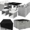 Salon de Jardin Gris Clair - Table de Jardin - 4 Chaise Confortable - 4 Tabouret de Jardin - Housse