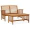 Salon de jardin 2 pcs Bois d'acacia solideL'ensemble de salon de jardin en bois ajoute un look vintage et est spécialement conçu pour votre jardin, patio ou autre espace de vie extérieur ! L'ensemble de meubles d'extérieur est construit en bois d'acacia massif avec une finition à l'huile, ce qui le rend stable et durable. Grâce au dessus de table en bois massif au design à lattes, la table basse vous offre de l'espace pour mettre vos collations, paniers de fruits, objets décoratifs, ainsi que d'autres essentiels. Le dossier et les accoudoirs ajoutent au confort d'assise du banc. Remarque importante : les couleurs et les grains varient d'une pièce à l'autre, rendant chaque pièce unique. La livraison est aléatoire, ce qui garantit l'exclusivité et l'individualité de votre produit.