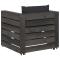 Salon de jardin 2 pcs avec coussins Bois imprégné de grisCe salon de jardin est un choix idéal pour vous détendre, profiter du beau temps, faire une sieste ou discuter avec votre famille ou vos amis. Avec un design intemporel de palette, l'ensemble de canapés en bois ajoute une touche de charme rustique à votre patio, jardin ou salon. Fabriqué en bois de pin imprégné, l'ensemble de salon palette est durable et résistant aux intempéries. Cet ensemble de canapé d'extérieur a une construction solide et nécessite peu d'entretien. Combiné avec des coussins bien rembourrés, l'ensemble de canapés offre le plus grand confort. De plus, la conception modulaire permet également de placer l'ensemble dans n'importe quel arrangement selon vos goûts. Remarque : afin de prolonger la durée de vie des meubles d'extérieur, nous vous recommandons de les protéger avec une housse imperméable.