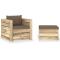 Salon de jardin 2 pcs avec coussins Bois imprégné de vertCe salon de jardin est un choix idéal pour vous détendre, profiter du beau temps, faire une sieste ou discuter avec votre famille ou vos amis. Avec un design intemporel de palette, l'ensemble de canapés en bois ajoute une touche de charme rustique à votre patio, jardin ou salon. Fabriqué en bois de pin imprégné, l'ensemble de salon palette est durable et résistant aux intempéries. Cet ensemble de canapé d'extérieur a une construction solide et nécessite peu d'entretien. Combiné avec des coussins bien rembourrés, l'ensemble de canapés offre le plus grand confort. De plus, la conception modulaire permet également de placer l'ensemble dans n'importe quel arrangement selon vos goûts. Remarque : afin de prolonger la durée de vie des meubles d'extérieur, nous vous recommandons de les protéger avec une housse imperméable.