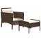 Salon de jardin 2 pcs avec coussins Marron Résine tresséeProfitez d'un moment de café confortable dans votre espace extérieur avec cet ensemble de salon de jardin ! C'est un complément parfait à votre jardin et à votre terrasse, créant une impression durable ! Matériau haut de gamme : la résine tressée est un matériau de résistance exceptionnelle et durable dans différentes conditions météorologiques.Cadre métallique : le cadre en métal assure la solidité et la stabilité de l'ensemble de salon d'extérieur.Coussins moelleux : les coussins épais et amovibles du salon de jardin sont inclus pour offrir le plus grand confort d'assise.Accoudoir et dossier confortables : les accoudoirs et le dossier ronds permettent à vos bras et à votre dos de se reposer confortablement.Tabouret pratique : vous pouvez vous détendre et y mettre vos pieds grâce au tabouret inclus. Vous pouvez également placer le tabouret n'importe où, selon vos préférences. Remarque :Chaque produit est livré avec un manuel de montage dans la boîte pour un montage facile.Afin de prolonger la durée de vie de votre mobilier d'extérieur, nous vous recommandons de le protéger avec une housse imperméable.