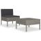 Salon de jardin 2 pcs avec coussins Résine tressée GrisCréez un espace de détente attrayant et relaxant dont vous avez toujours rêvé avec ce salon de jardin. Vous pouvez profiter d'un après-midi ensoleillé ou d'une soirée d'été relaxante avec votre famille et vos amis grâce à cet ensemble de meubles de jardin ! Avec la résine tressée résistante aux intempéries et imperméable, ce salon de jardin est facile à nettoyer et à entretenir. Le cadre en acier enduit de poudre rend le canapé et la table à thé stables et solides. Équipé de coussins épais et moelleux, ce canapé de milieu offrira un confort d'assise ultime. Les housses en polyester faciles à nettoyer peuvent être retirées et lavées. La table basse est idéale pour garder la nourriture et les boissons à portée de main. De plus, grâce à sa conception légère et modulaire, vous pouvez déplacer cet ensemble dans votre maison avec une grande facilité. Remarque : nous vous recommandons de couvrir l'ensemble pendant la pluie, la neige et le gel.