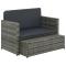Salon de jardin 2 pcs avec coussins Résine tressée GrisCet ensemble de canapé en résine tressée allie style et fonctionnalité et deviendra le point central de votre jardin ou patio. L'ensemble de mobilier est conçu pour être utilisé à l'extérieur toute l'année. Grâce à la résine tressée résistante aux intempéries, l'ensemble de salon est facile à nettoyer, résistant à l'usure et adapté à une utilisation quotidienne. Cet ensemble est doté d'un cadre robuste en acier enduit de poudre, qui est très durable. Il est également léger et modulaire, ce qui le rend flexible et facile à déplacer pour s'adapter à n'importe quel décor. Vous pouvez transformer facilement le canapé en lit en inclinant le dossier vers le bas. Vous pourrez ensuite profiter d'une sieste avec le repose-pied ajouté. Vous vous détendrez dans un confort et un style exceptionnels tout au long de l'été, quelle que soit l'occasion. Lorsqu'il n'est pas utilisé, le repose-pied peut être rangé sous le canapé pour gagner de place. Cet ensemble est livré avec des coussins d'assise et de dossier très confortables et rembourrés épaississement. Les housses en polyester nécessitant peu d'entretien peuvent également être enlevées et lavées. La livraison comprend un canapé à 2 places, un repose-pied et trois coussins. Remarque : Nous vous recommandons de couvrir l'ensemble pendant la pluie, la neige et le gel.