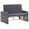Salon de jardin 2 pcs avec coussins Résine tressée GrisCet ensemble de canapé de jardin avec tabouret en rotin sera un excellent ajout à votre espace de vie extérieur. Il ajoutera une touche d'élégance à votre patio, balcon ou jardin avec son design discret mais élégant. Fabriqué en résine tressée résistante aux intempéries, l'ensemble est facile à nettoyer, résistant à l'usure et convient à une utilisation quotidienne à l'extérieur. Le cadre en acier enduit de poudre rend l'ensemble robuste et durable. Grâce à sa conception légère, il est facile à déplacer. Le tabouret a une fonction de rangement où vous pouvez ranger des articles de jardin comme des coussins de meubles, des oreillers, des couvertures supplémentaires, des jouets de piscine et des fournitures de jardinage. Cet ensemble est livré avec des coussins très confortables et bien rembourrés. Les housses en polyester nécessitant peu d'entretien peuvent également être enlevées et lavées. Tous les articles sont faciles à assembler. La livraison inclut 1 canapé, 1 tabouret et 3 coussins. Remarque : nous vous recommandons de couvrir l'ensemble pendant la pluie, la neige et le gel.