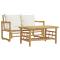 Salon de jardin 2 pcs avec coussins bambouCe salon de jardin en bambou est un excellent choix pour les repas en plein air ou pour vous détendre dans le jardin, dans l'arrière-cour ou sur la terrasse. Matériau durable : le bambou est connu pour sa flexibilité et sa dureté. Les meubles en bambou sont une bonne option lorsque vous voulez des meubles solides fabriqués à partir de matériaux naturels.Dessus stable et robuste : le dessus de la table de jardin est parfait pour exposer vos objets décoratifs, cadres photo et plantes en pot.Expérience d'assise confortable : ce mobilier d'extérieur, doté de coussins épais, offre une expérience d'assise confortable.Housse amovible et lavable : Ce coussin de siège est doté d'une housse amovible pour un lavage et un entretien faciles. Bon à savoir :Pour que vos meubles d'extérieur restent beaux, nous vous recommandons de les protéger avec une housse imperméable. Maximum 110 kg par siège. Soyez conscient du risque de feux ouverts et d'autres sources de forte chaleur à proximité du produit.