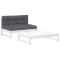Salon de jardin 2 pcs avec coussins blanc bois massifCe salon de jardin en bois, qui se démarque par son design à lattes et ses coussins moelleux, sera un excellent supplément à votre jardin, patio ou terrasse pour profiter d'un moment agréable avec votre famille ou vos amis. Bois de pin massif : le bois de pin massif est un matériau naturel magnifique. Le bois de pin a un grain droit et les noeuds donnent au matériau son aspect caractéristique et rustique.Cadre robuste et stable : le cadre en bois rend l'ensemble de salon robuste et stable pour une utilisation quotidienne à l'extérieur.Expérience d'assise confortable : le dossier ajoute un confort d'assise supplémentaire à l'ensemble de meubles de jardin. De plus, les coussins bien rembourrés vous permettent de vous asseoir confortablement.Design modulaire : le canapé est flexible et facile à déplacer. Vous pouvez le combiner avec d'autres segments modulaires de la boutique en ligne pour créer vos propres configurations de salon de jardin ! Bon à savoir :Pour que vos meubles d'extérieur restent beaux, nous vous recommandons de les protéger avec une housse imperméable. Maximum 110 kg par siège.