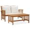 Salon de jardin 2 pcs avec coussins bois d'acacia solideL'ensemble de salon de jardin en bois ajoute un look vintage et est spécialement conçu pour votre jardin, patio ou autre espace de vie extérieur ! L'ensemble de meubles d'extérieur est construit en bois d'acacia massif avec une finition à l'huile, ce qui le rend stable et durable. Grâce au dessus de table en bois massif au design à lattes, la table basse vous offre de l'espace pour mettre vos collations, paniers de fruits, objets décoratifs, ainsi que d'autres essentiels. Le coussin de siège et l'oreiller de dossier rendent le banc confortable pour y s'asseoir. Le dossier et les accoudoirs apportent un confort d'assise supplémentaire. Remarque importante : les couleurs et les grains varient d'une pièce à l'autre, rendant chaque pièce unique. La livraison est aléatoire, ce qui garantit l'exclusivité et l'individualité de votre produit.