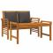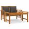 Salon de jardin 2 pcs avec coussins gris foncé Bois massifDétendez-vous et profitez de vos loisirs sur cet ensemble de meubles de jardin très tendance ! Il est conçu pour répondre à une variété de vos besoins. Bois massif de qualité supérieure : l'ensemble de salon est fabriqué en bois d'acacia. Le bois d'acacia massif est un beau matériau naturel. Le bois d'acacia est un bois dur tropical, dense, robuste et durable.Dessus de table robuste : grâce au dessus de table en bois massif avec un design à lattes, la table basse vous offre de l'espace pour mettre vos collations, corbeilles de fruits, objets décoratifs et autres objets essentiels.Design confortable : le dossier et les accoudoirs légèrement incurvés ajoutent un confort d'assise supplémentaire au banc.Coussin et oreillers confortables : le coussin et les oreillers bien rembourrés et amovibles offrent un confort optimal pendant votre temps d'assise en plein air. Remarque :Afin de prolonger la durée de vie de votre mobilier d'extérieur, nous vous recommandons de le protéger avec une housse imperméable.