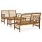 Salon de jardin 3 pcs Bois d'acacia solideL'ensemble de salon de jardin en bois ajoute un look vintage et est spécialement conçu pour votre jardin, patio ou autre espace de vie extérieur ! L'ensemble de meubles d'extérieur est construit en bois d'acacia massif avec une finition à l'huile, ce qui le rend stable et durable. Grâce au dessus de table en bois massif au design à lattes, la table basse vous offre de l'espace pour mettre vos collations, paniers de fruits, objets décoratifs, ainsi que d'autres essentiels. Le dossier légèrement incurvé et les accoudoirs ajoutent au confort d'assise du banc. Remarque importante : les couleurs et les grains varient d'une pièce à l'autre, rendant chaque pièce unique. La livraison est aléatoire, ce qui garantit l'exclusivité et l'individualité de votre produit.