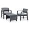 Salon de jardin 3 pcs Plastique AnthraciteNotre ensemble de mobilier de jardin constitue le cadre idéal pour un agréable repas en plein air en famille ou entre amis, dans n'importe quel espace extérieur. Cet ensemble de mobilier est parfaitement adapté à une utilisation en plein air grâce à son matériau plastique solide mais léger, durable, résistant aux intempéries et facile à nettoyer. Les coussins de siège en polyester ajouteront un confort supplémentaire aux fauteuils. L'ensemble de mobilier de jardin est facile à assembler. La livraison inclut : 1 table, 2 fauteuils et 2 coussins de siège.