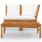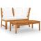 Salon de jardin 3 pcs avec coussin crème Bois d'acacia solideCet ensemble de salon de jardin en bois ajoute un look vintage et est spécialement conçu pour votre jardin, patio ou autre espace de vie extérieur ! L'ensemble de meubles d'extérieur est construit en bois d'acacia massif avec une finition à l'huile, ce qui le rend stable et durable. Grâce au dessus de table en bois massif au design à lattes, la table basse vous offre de l'espace pour mettre vos collations, paniers de fruits, objets décoratifs, ainsi que d'autres essentiels. Les coussins sont recouverts d'un rembourrage épais pour un confort et un soutien suprêmes. Vous pouvez le combiner avec d'autres segments modulaires disponibles pour créer vos propres configurations de salon de jardin ! Remarque importante : les couleurs et les grains varient d'une pièce à l'autre, rendant chaque pièce unique ; la livraison est aléatoire. ,