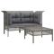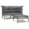 Salon de jardin 3 pcs avec coussins Gris Résine tresséeProfitez d'un moment de café confortable dans votre espace extérieur avec cet ensemble de salon de jardin ! C'est un complément parfait à votre jardin et à votre terrasse, créant une impression durable ! Matériau résistant aux intempéries : la résine tressée, également connue sous le nom de rotin poly, résiste aux intempéries et est facile à nettoyer. Elle reste belle à l'extérieur pendant une longue période. Elle offre une excellente qualité, commodité et un aspect esthétique.Cadre robuste : le cadre en acier enduit de poudre rend l'ensemble de salon d'extérieur robuste et stable pour une utilisation quotidienne à l'extérieur.Expérience d'assise confortable : les dossiers ajoutent un confort d'assise supplémentaire pour l'ensemble de salon de terrasse. De plus, les coussins bien rembourrés offrent du confort pendant votre temps d'assise.Conception modulaire : chaque article est flexible et facile à déplacer, vous pouvez donc la combiner avec d'autres segments modulaires dans la boutique en ligne pour créer vos propres configurations de salon de jardin ! Remarque :Pour que vos meubles d'extérieur restent beaux, nous vous recommandons de les protéger avec une housse imperméable. Maximum 110 kg par siège. Soyez conscient du risque de feu ouvert et d'autres sources de forte chaleur à proximité de l'appareil.
