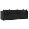 Salon de jardin 3 pcs avec coussins Noir Résine tresséeCet ensemble de salon de jardin tendance, au design élégant et contemporain, est un excellent choix pour manger ou vous détendre dans votre jardin. Matériau résistant aux intempéries : la résine tressée, également connue sous le nom de rotin poly, résiste aux intempéries et est facile à nettoyer. Elle reste belle à l'extérieur pendant une longue période. Elle offre une excellente qualité, commodité et un aspect esthétique.Cadre robuste : les cadres en acier enduit de poudre rendent l'ensemble de salon d'extérieur robuste et stable pour une utilisation quotidienne à l'extérieur.Conception modulaire : l'ensemble de salon de jardin est flexible et facile à déplacer, vous pouvez donc le combiner avec d'autres segments modulaires dans la boutique en ligne pour créer vos propres configurations d'ensemble de salon de jardin !Expérience d'assise confortable : le dossier ajoute un confort d'assise supplémentaire au canapé de jardin. De plus, les coussins bien rembourrés offrent du confort pendant votre temps d'assise. Bon à savoir :Pour faciliter au maximum le montage, chaque produit est livré avec des instructions. Remarque :Le produit est conçu pour une utilisation à l'extérieur uniquement. Ne le rangez pas à l'intérieur.Pour que vos meubles d'extérieur restent beaux, nous vous recommandons de les protéger avec une housse imperméable. Maximum 110 kg par siège.
