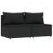 Salon de jardin 3 pcs avec coussins Noir Résine tresséeCet ensemble de salon de jardin tendance, au design élégant et contemporain, est un excellent choix pour manger ou vous détendre dans votre jardin. Matériau résistant aux intempéries : la résine tressée, également connue sous le nom de rotin poly, résiste aux intempéries et est facile à nettoyer. Elle reste belle à l'extérieur pendant une longue période. Elle offre une excellente qualité, commodité et un aspect esthétique.Cadre robuste : les cadres en acier enduit de poudre rendent l'ensemble de salon d'extérieur robuste et stable pour une utilisation quotidienne à l'extérieur.Dessus de table pratique : le dessus lisse de la table de jardin est en verre trempé, facile à nettoyer avec un chiffon humide. De plus, le dessus robuste est parfait pour placer des repas, des boissons et d'autres objets décoratifs.Conception modulaire : l'ensemble de salon de jardin est flexible et facile à déplacer, vous pouvez donc le combiner avec d'autres segments modulaires dans la boutique en ligne pour créer vos propres configurations d'ensemble de salon de jardin !Expérience d'assise confortable : le dossier ajoute un confort d'assise supplémentaire au canapé de jardin. De plus, les coussins bien rembourrés offrent du confort pendant votre temps d'assise. Bon à savoir :Pour faciliter au maximum le montage, chaque produit est livré avec des instructions. Remarque :Le produit est conçu pour une utilisation à l'extérieur uniquement. Ne le rangez pas à l'intérieur.Pour que vos meubles d'extérieur restent beaux, nous vous recommandons de les protéger avec une housse imperméable. Maximum 110 kg par siège.