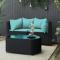 Salon de jardin 3 pcs avec coussins Noir Résine tressée