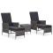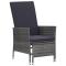 Salon de jardin 3 pcs avec coussins Résine tressée GrisCréez un coin salon relaxant avec cet ensemble de salon de jardin très tendance. Cet ensemble de salon d'extérieur comprend un cadre en acier enduit de poudre recouvert de résine tressée, ce qui le rend robuste et facile à nettoyer. Les coussins bien rembourrés ajoutent un confort supplémentaire pendant votre temps de détente. Les housses de coussin avec fermeture éclair sont amovibles et lavables. De plus, vous pouvez détendre vos jambes sur les repose-pieds qui peuvent être rangés sous la chaise lorsqu'ils ne sont pas utilisés. Le dossier est également pliable pour garder les sièges propres. Grâce à la construction légère en résine tressée, vous pouvez le déplacer facilement. Remarque importante : nous vous recommandons de couvrir le salon pendant la pluie, la neige et le gel pour une utilisation durable. Maximum 110 kg par siège. Soyez conscient du risque de feu ouvert et d'autres sources de forte chaleur à proximité de l'appareil.
