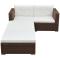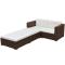 Salon de jardin 3 pcs avec coussins Résine tressée MarronCet ensemble de canapés en rotin élégant et très confortable sera un véritable élément attrayant dans votre jardin ou sur votre terrasse. Le meuble de jardin est fait de rotin PE résistant aux intempéries, ce qui le rend facile à nettoyer et suffisamment résistant pour un usage extérieur quotidien. Les canapés et les chaises longues sont dotés d'un cadre en acier robuste et durable. Le transat a un dossier inclinable de sorte que vous puissiez toujours trouver la position la plus confortable. Les coussins de siège et de dossier amovibles sont très confortables et leurs housses en polyester sont souples et faciles à nettoyer. Cet ensemble de canapés en rotin léger et modulaire peut être facilement déplacé et placé de façon flexible pour s'adapter à tous les décors. La livraison comprend 2 canapés d'angle, 1 chaise longue, 3 coussins de siège et 2 coussins de dossier. Remarque : Nous vous recommandons de couvrir l'ensemble pendant la pluie, la neige et le gel.
