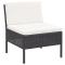 Salon de jardin 3 pcs avec coussins Résine tressée NoirCréez un espace de détente captivant et relaxant dont vous avez toujours rêvé avec notre salon de jardin. Vous pouvez profiter d'un après-midi ou d'une soirée d'été ensoleillée et relaxante avec votre famille et vos amis grâce à cet ensemble de salon modulaire ! Construit en résine tressée durable sur un cadre en acier enduit de poudre, cet ensemble est fort, robuste et résistant aux intempéries. Grâce à la résine tressée toutes saisons, le salon de jardin est facile à nettoyer, résistant à l'usure et adapté à un usage quotidien. Les coussins bien rembourrés et les sièges modernes extra profonds vous feront revenir pour vous plonger dans la détente. De plus, grâce à sa conception légère et modulaire, vous pouvez déplacer cet ensemble dans votre maison avec une grande facilité. Remarque : nous vous recommandons de couvrir l'ensemble de rotin pendant la pluie, la neige et le gel.