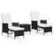 Salon de jardin 3 pcs avec coussins Résine tressée NoirCréez un coin salon relaxant avec cet ensemble de salon de jardin très tendance. Cet ensemble de salon d'extérieur comprend un cadre en acier enduit de poudre recouvert de résine tressée, ce qui le rend robuste et facile à nettoyer. Les coussins bien rembourrés ajoutent un confort supplémentaire pendant votre temps de détente. Les housses de coussin avec fermeture éclair sont amovibles et lavables. De plus, vous pouvez détendre vos jambes sur les repose-pieds qui peuvent être rangés sous la chaise lorsqu'ils ne sont pas utilisés. Le dossier est également pliable pour garder les sièges propres. Grâce à la construction légère en résine tressée, vous pouvez le déplacer facilement. Remarque importante : nous vous recommandons de couvrir le salon pendant la pluie, la neige et le gel pour une utilisation durable. Maximum 110 kg par siège. Soyez conscient du risque de feu ouvert et d'autres sources de forte chaleur à proximité de l'appareil.