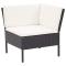 Salon de jardin 3 pcs avec coussins Résine tressée NoirCréez un espace de détente captivant et relaxant dont vous avez toujours rêvé avec notre salon de jardin. Vous pouvez profiter d'un après-midi ou d'une soirée d'été ensoleillée et relaxante avec votre famille et vos amis grâce à cet ensemble de salon modulaire ! Construit en résine tressée durable sur un cadre en acier enduit de poudre, cet ensemble est fort, robuste et résistant aux intempéries. Grâce à la résine tressée toutes saisons, le salon de jardin est facile à nettoyer, résistant à l'usure et adapté à un usage quotidien. Les coussins bien rembourrés et les sièges modernes extra profonds vous feront revenir pour vous plonger dans la détente. De plus, grâce à sa conception légère et modulaire, vous pouvez déplacer cet ensemble dans votre maison avec une grande facilité. Remarque : nous vous recommandons de couvrir l'ensemble de rotin pendant la pluie, la neige et le gel.