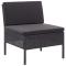 Salon de jardin 3 pcs avec coussins Résine tressée NoirCréez un espace de détente captivant et relaxant dont vous avez toujours rêvé avec notre salon de jardin. Vous pouvez profiter d'un après-midi ou d'une soirée d'été ensoleillée et relaxante avec votre famille et vos amis grâce à cet ensemble de salon modulaire ! Construit en résine tressée durable sur un cadre en acier enduit de poudre, cet ensemble est fort, robuste et résistant aux intempéries. Grâce à la résine tressée toutes saisons, le salon de jardin est facile à nettoyer, résistant à l'usure et adapté à un usage quotidien. Les coussins bien rembourrés et les sièges modernes extra profonds vous feront revenir pour vous plonger dans la détente. De plus, grâce à sa conception légère et modulaire, vous pouvez déplacer cet ensemble dans votre maison avec une grande facilité. Remarque : nous vous recommandons de couvrir l'ensemble de rotin pendant la pluie, la neige et le gel.