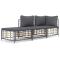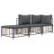 Salon de jardin 3 pcs avec coussins anthracite résine tresséeProfitez d'un moment de café confortable dans votre espace extérieur avec cet ensemble de salon de jardin ! C'est un complément parfait à votre jardin et à votre terrasse, créant une impression durable ! Matériau résistant aux intempéries : le poly rotin est résistant aux intempéries et facile à nettoyer. Il reste beau à l'extérieur pendant une longue période de temps. Il est plus économique que d'autres matériaux, tout en offrant une excellente qualité, une commodité et un aspect esthétique.Cadre robuste et stable : le cadre en acier de l'ensemble de salon assure robustesse et stabilité.Expérience d'assise confortable : le dossier ajoute un confort d'assise supplémentaire pour l'ensemble de salon. De plus, les coussins bien rembourrés offrent un confort pour votre temps d'assise.Conception modulaire : l'ensemble de salon de jardin est flexible et facile à déplacer, vous pouvez donc le combiner avec d'autres segments modulaires de la boutique en ligne pour créer vos propres configurations personnelles de salon de jardin ! Remarque :Pour que vos meubles d'extérieur restent beaux, nous vous recommandons de les protéger avec une housse imperméable. Maximum 110 kg par siège. Soyez conscient du risque de feu ouvert et d'autres sources de forte chaleur à proximité de l'appareil.