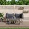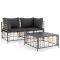 Salon de jardin 3 pcs avec coussins anthracite résine tresséeProfitez d'un moment de café confortable dans votre espace extérieur avec cet ensemble de salon de jardin ! C'est un complément parfait à votre jardin et à votre terrasse, créant une impression durable ! Matériau résistant aux intempéries : le poly rotin est résistant aux intempéries et facile à nettoyer. Il reste beau à l'extérieur pendant une longue période de temps. Il est plus économique que d'autres matériaux, tout en offrant une excellente qualité, une commodité et un aspect esthétique.Cadre robuste et stable : le cadre en acier de l'ensemble de salon assure robustesse et stabilité.Expérience d'assise confortable : le dossier ajoute un confort d'assise supplémentaire pour l'ensemble de salon. De plus, les coussins bien rembourrés offrent un confort pour votre temps d'assise.Dessus de table robuste : le dessus de table robuste de la table basse est parfait pour placer des repas, des boissons, des vases, des bols de fruits ou d'autres objets décoratifs.Conception modulaire : l'ensemble de salon de jardin est flexible et facile à déplacer, vous pouvez donc le combiner avec d'autres segments modulaires de la boutique en ligne pour créer vos propres configurations personnelles de salon de jardin ! Remarque :Pour que vos meubles d'extérieur restent beaux, nous vous recommandons de les protéger avec une housse imperméable. Maximum 110 kg par siège. Soyez conscient du risque de feu ouvert et d'autres sources de forte chaleur à proximité de l'appareil.