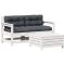 Salon de jardin 3 pcs avec coussins blanc bois de pin massifCet ensemble de salon de jardin en bois avec un design à lattes sera un excellent complément à votre jardin, patio ou terrasse pour profiter d'un moment agréable avec votre famille ou vos amis. Bois de pin massif : le bois de pin massif est un matériau naturel magnifique. Le bois de pin a un grain droit et les noeuds donnent au matériau son aspect caractéristique et rustique.Design à lattes : le design à lattes de la chaise de jardin en bois empêche l'accumulation de l'eau, ce qui permet de garder le siège au sec et d'éviter un pourrissement inutile.Expérience d'assise confortable : le dossier et l'accoudoir ajoutent un confort d'assise supplémentaire à l'ensemble de meubles de jardin. De plus, le coussin bien rembourré vous permet de vous asseoir confortablement.Utilisation polyvalente : le pouf d'extérieur avec couvercle peut non seulement être utilisé pour s'asseoir ou se détendre, mais il peut également être utilisé comme table basse pour contenir vos boissons, votre nourriture et le meuble de jardin dispose d'un espace de rangement sous le siège. Conception modulaire : cet ensemble de meubles d'extérieur a une conception modulaire, ce qui le rend complètement flexible et facile à déplacer, afin que vous puissiez créer un agencement de meubles d'extérieur personnalisé. Bon à savoir :Pour que vos meubles d'extérieur restent beaux, nous vous recommandons de les protéger avec une housse imperméable. Maximum 110 kg par siège.