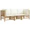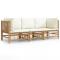 Salon de jardin 3 pcs avec coussins blanc crème bambouSavourez une tasse de café ou de thé par beau temps dans votre espace extérieur avec cet élégant ensemble de salon de jardin en bambou ! Matériau durable : le bambou est connu pour sa flexibilité et sa dureté. Les meubles en bambou sont une bonne option lorsque vous voulez des meubles d'extérieur solides fabriqués à partir de matériaux naturels.Expérience d'assise confortable : le dossier et l'accoudoir ajoutent un confort d'assise supplémentaire pour l'ensemble de canapé de jardin. De plus, les coussins d'assise et de dossier moelleux offrent un confort pendant votre temps d'assise.Conception modulaire : l'ensemble de salon est flexible et facile à déplacer, vous pouvez donc le combiner avec d'autres segments modulaires dans la boutique en ligne pour créer vos propres configurations d'ensemble de salon d'extérieur ! Remarque :Pour que vos meubles d'extérieur restent beaux, nous vous recommandons de les protéger avec une housse imperméable.Bon à savoir :Pour faciliter au maximum le montage, chaque produit est livré avec des instructions.
