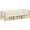 Salon de jardin 3 pcs avec coussins blanc crème bambouCréez un coin salon relaxant avec ce salon de jardin en bambou. Ce salon de jardin est en bambou, ce qui le rend robuste et facile à nettoyer. Les coussins bien rembourrés ajoutent un confort supplémentaire à votre temps de détente. Les housses de coussin sont amovibles et lavables avec des fermetures éclair. Avec une construction légère, cet ensemble de salon d'extérieur est facile à déplacer. Grâce à la conception modulaire, vous pouvez placer l'ensemble dans n'importe quel arrangement selon vos préférences. Remarque : afin de prolonger la durée de vie des meubles d'extérieur, nous vous recommandons de les protéger avec une housse imperméable.