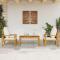 Salon de jardin 3 pcs avec coussins bois massif d'acaciaCet ensemble de salon de jardin en bois a un design élégant et constitue un excellent choix pour vous détendre et profiter du jardin ou du patio. Bois d'acacia massif : l'ensemble de salon d'extérieur est fabriqué en bois d'acacia massif pour plus de robustesse et de stabilité. Le bois d'acacia solide est un beau matériau naturel. Le bois d'acacia a de beaux grains de bois qui rendent chaque meuble unique et légèrement différent les uns des autres.Expérience d'assise confortable : doté d'accoudoirs et d'un dossier, l'ensemble de salon de terrasse vous offre le plus grand confort. De plus, les coussins bien rembourrés offrent du confort pendant votre temps d'assise.Dessus stable et facile à nettoyer : cette table de jardin a un dessus en bois d'acacia robuste, durable et facile à nettoyer avec un chiffon humide.Nombreuses applications : le siège de jardin est parfait pour tout porche avant, patio, arrière-cour, pelouse, jardin, etc. Bon à savoir :Pour que vos meubles d'extérieur restent beaux, nous vous recommandons de les protéger avec une housse imperméable. Maximum 110 kg par siège.