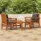 Salon de jardin 3 pcs avec coussins bois massif d'acaciaDétendez-vous et profitez de votre temps libre avec ce salon de jardin en bois tendance ! Il est destiné à répondre à tous vos besoins pour vous détendre à l'extérieur. Bois d'acacia massif : le bois d'acacia massif est un matériau naturel magnifique. Le bois d'acacia un bois dur tropical, qui est dense, robuste et durable.Cadre robuste et stable : le cadre en bois assure robustesse et stabilité.Design confortable : les dossiers et les accoudoirs légèrement incurvés ajoutent un confort d'assise supplémentaire pour les chaises de loisirs. De plus, les coussins et les oreillers bien rembourrés et amovibles offrent un confort optimal pour votre temps d'assise en plein air.Dessus de table robuste : le dessus de table robuste avec un design à lattes vous offre de l'espace pour mettre vos collations, paniers de fruits, objets décoratifs, ainsi que d'autres éléments essentiels. Remarque :Afin de prolonger la durée de vie de votre mobilier d'extérieur, nous vous recommandons de le protéger avec une housse imperméable.Chaque produit est livré avec un manuel de montage dans la boîte pour un montage facile.