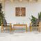 Salon de jardin 3 pcs avec coussins bois massif d'acaciaCet ensemble de salon de jardin en bois a un design élégant et constitue un excellent choix pour vous détendre et profiter du jardin ou du patio. Bois d'acacia massif : l'ensemble de salon d'extérieur est fabriqué en bois d'acacia massif pour plus de robustesse et de stabilité. Le bois d'acacia solide est un beau matériau naturel. Le bois d'acacia a de beaux grains de bois qui rendent chaque meuble unique et légèrement différent les uns des autres.Expérience d'assise confortable : doté d'accoudoirs et d'un dossier, l'ensemble de salon de terrasse vous offre le plus grand confort. De plus, les coussins bien rembourrés offrent du confort pendant votre temps d'assise.Dessus stable et facile à nettoyer : cette table de jardin a un dessus en bois d'acacia robuste, durable et facile à nettoyer avec un chiffon humide.Nombreuses applications : le siège de jardin est parfait pour tout porche avant, patio, arrière-cour, pelouse, jardin, etc. Bon à savoir :Pour que vos meubles d'extérieur restent beaux, nous vous recommandons de les protéger avec une housse imperméable. Maximum 110 kg par siège.