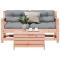 Salon de jardin 3 pcs avec coussins bois massif douglasCet ensemble de salon de jardin en bois avec un design à lattes sera un excellent complément à votre jardin, patio ou terrasse pour profiter d'un moment agréable avec votre famille ou vos amis. Bois de douglas massif : le bois de douglas massif est un bois très durable qui fonctionne bien pour l'extérieur. Le bois de douglas est également suffisamment solide pour être travaillé avec un minimum de soin, même sous l'influence des intempéries. Design à lattes : le design à lattes de la chaise de jardin en bois empêche l'accumulation de l'eau, ce qui permet de garder le siège au sec et d'éviter un pourrissement inutile. Expérience d'assise confortable : le dossier et l'accoudoir ajoutent un confort d'assise supplémentaire à l'ensemble de meubles de jardin. De plus, le coussin bien rembourré vous permet de vous asseoir confortablement. Utilisation polyvalente : le pouf d'extérieur avec couvercle peut non seulement être utilisé pour s'asseoir ou se détendre, mais il peut également être utilisé comme table basse pour contenir vos boissons, votre nourriture et le meuble de jardin dispose d'un espace de rangement sous le siège. Conception modulaire : cet ensemble de meubles d'extérieur a une conception modulaire, ce qui le rend complètement flexible et facile à déplacer, afin que vous puissiez créer un agencement de meubles d'extérieur personnalisé. Bon à savoir : Pour que vos meubles d'extérieur restent beaux, nous vous recommandons de les protéger avec une housse imperméable. Maximum 110 kg par siège.