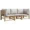 Salon de jardin 3 pcs avec coussins gris clair bambouSavourez une tasse de café ou de thé par beau temps dans votre espace extérieur avec cet élégant ensemble de salon de jardin en bambou ! Matériau durable : le bambou est connu pour sa flexibilité et sa dureté. Les meubles en bambou sont une bonne option lorsque vous voulez des meubles d'extérieur solides fabriqués à partir de matériaux naturels.Expérience d'assise confortable : le dossier et l'accoudoir ajoutent un confort d'assise supplémentaire pour l'ensemble de canapé de jardin. De plus, les coussins d'assise et de dossier moelleux offrent un confort pendant votre temps d'assise.Conception modulaire : l'ensemble de salon est flexible et facile à déplacer, vous pouvez donc le combiner avec d'autres segments modulaires dans la boutique en ligne pour créer vos propres configurations d'ensemble de salon d'extérieur ! Remarque :Pour que vos meubles d'extérieur restent beaux, nous vous recommandons de les protéger avec une housse imperméable.Bon à savoir :Pour faciliter au maximum le montage, chaque produit est livré avec des instructions.