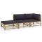 Salon de jardin 3 pcs avec coussins gris foncé bambouCréez un coin salon relaxant avec ce salon de jardin en bambou. Ce salon de jardin est en bambou, ce qui le rend robuste et facile à nettoyer. Les coussins bien rembourrés ajoutent un confort supplémentaire à votre temps de détente. Les housses de coussin sont amovibles et lavables avec des fermetures éclair. Avec une construction légère, cet ensemble de salon d'extérieur est facile à déplacer. Grâce à la conception modulaire, vous pouvez placer l'ensemble dans n'importe quel arrangement selon vos préférences. Remarque : afin de prolonger la durée de vie des meubles d'extérieur, nous vous recommandons de les protéger avec une housse imperméable.