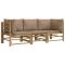 Salon de jardin 3 pcs avec coussins taupe bambouSavourez une tasse de café ou de thé par beau temps dans votre espace extérieur avec cet élégant ensemble de salon de jardin en bambou ! Matériau durable : le bambou est connu pour sa flexibilité et sa dureté. Les meubles en bambou sont une bonne option lorsque vous voulez des meubles d'extérieur solides fabriqués à partir de matériaux naturels.Expérience d'assise confortable : le dossier et l'accoudoir ajoutent un confort d'assise supplémentaire pour l'ensemble de canapé de jardin. De plus, les coussins d'assise et de dossier moelleux offrent un confort pendant votre temps d'assise.Conception modulaire : l'ensemble de salon est flexible et facile à déplacer, vous pouvez donc le combiner avec d'autres segments modulaires dans la boutique en ligne pour créer vos propres configurations d'ensemble de salon d'extérieur ! Remarque :Pour que vos meubles d'extérieur restent beaux, nous vous recommandons de les protéger avec une housse imperméable.Bon à savoir :Pour faciliter au maximum le montage, chaque produit est livré avec des instructions.
