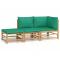 Salon de jardin 3 pcs avec coussins vert bambouSavourez une tasse de café ou de thé par beau temps dans votre espace extérieur avec cet élégant ensemble de salon de jardin en bambou ! Matériau durable : le bambou est connu pour sa flexibilité et sa dureté. Les meubles en bambou sont une bonne option lorsque vous voulez des meubles d'extérieur solides fabriqués à partir de matériaux naturels.Expérience d'assise confortable : le dossier et l'accoudoir ajoutent un confort d'assise supplémentaire pour l'ensemble de canapé de jardin. De plus, les coussins d'assise et de dossier moelleux offrent un confort pendant votre temps d'assise.Conception modulaire : l'ensemble de salon est flexible et facile à déplacer, vous pouvez donc le combiner avec d'autres segments modulaires dans la boutique en ligne pour créer vos propres configurations d'ensemble de salon d'extérieur ! Remarque :Pour que vos meubles d'extérieur restent beaux, nous vous recommandons de les protéger avec une housse imperméable. Bon à savoir :Pour faciliter au maximum le montage, chaque produit est livré avec des instructions.