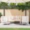 Salon de jardin 3 pcs blanc bois massif de pinCet ensemble de salon de jardin en bois a un design élégant et constitue un excellent choix pour vous détendre et profiter du jardin ou du patio. Bois de pin massif : l'ensemble de salon d'extérieur est fabriqué en bois de pin massif pour plus de robustesse et de stabilité. Le bois de pin solide est un beau matériau naturel. Le bois de pin a un grain droit et les noeuds donnent au matériau son aspect caractéristique et rustique.Expérience d'assise confortable : doté d'accoudoirs et d'un dossier, le salon de jardin vous offre un confort optimal.Design à lattes : le design à lattes du meuble en bois empêche l'accumulation de l'eau, ce qui permet de garder le siège au sec et empêchant la pourriture indésirable.Nombreuses applications : le siège de jardin est parfait pour tout porche avant, patio, arrière-cour, pelouse, jardin, etc. Bon à savoir :Pour que vos meubles d'extérieur restent beaux, nous vous recommandons de les protéger avec une housse imperméable. Maximum 110 kg par siège.