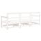 Salon de jardin 3 pcs blanc bois massif de pinCet ensemble de salon de jardin en bois avec un design à lattes sera un excellent complément à votre jardin, patio ou terrasse pour profiter d'un moment agréable avec votre famille ou vos amis. Bois de pin massif : le bois de pin massif est un matériau naturel magnifique. Le bois de pin a un grain droit et les noeuds donnent au matériau son aspect caractéristique et rustique. Cadre robuste et stable : les cadres en bois rendent l'ensemble de salon robuste et stable pour une utilisation quotidienne à l'extérieur. Expérience d'assise confortable : les dossiers et les accoudoirs ajoutent un confort d'assise supplémentaire à l'ensemble de mobilier de jardin. Conception modulaire : l'ensemble de meubles d'extérieur est flexible et facile à déplacer, vous pouvez le combiner avec d'autres segments modulaires dans notre boutique en ligne pour créer vos propres configurations d'ensemble de salon de jardin ! Bon à savoir : Pour que vos meubles d'extérieur restent beaux, nous vous recommandons de les protéger avec une housse imperméable. Maximum 110 kg par siège. ,