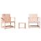 Salon de jardin 3 pcs bois massif douglasCet ensemble de salon de jardin en bois a un design élégant et constitue un excellent choix pour vous détendre et profiter du jardin ou du patio. Bois de douglas massif : l'ensemble de salon d'extérieur est fabriqué en bois de douglas massif pour plus de robustesse et de stabilité. Le bois de douglas massif est un bois très durable qui fonctionne bien pour l'extérieur. Le bois de douglas est également suffisamment solide pour être travaillé avec un minimum de soin, même sous l'influence des intempéries. Expérience d'assise confortable : doté d'accoudoirs et d'un dossier, le salon de jardin vous offre un confort optimal. Design à lattes : le design à lattes du meuble en bois empêche l'accumulation de l'eau, ce qui permet de garder le siège au sec et empêchant la pourriture indésirable. Nombreuses applications : le siège de jardin est parfait pour tout porche avant, patio, arrière-cour, pelouse, jardin, etc. Bon à savoir : Pour que vos meubles d'extérieur restent beaux, nous vous recommandons de les protéger avec une housse imperméable. Maximum 110 kg par siège. ,