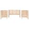 Salon de jardin 3 pcs bois massif de pinCet ensemble de salon de jardin en bois a un design élégant et constitue un excellent choix pour vous détendre et profiter du jardin ou du patio. Bois de pin massif : l'ensemble de salon d'extérieur est fabriqué en bois de pin massif pour plus de robustesse et de stabilité. Le bois de pin solide est un beau matériau naturel. Le bois de pin a un grain droit et les noeuds donnent au matériau son aspect caractéristique et rustique.Expérience d'assise confortable : doté d'accoudoirs et d'un dossier, le salon de jardin vous offre un confort optimal.Design à lattes : le design à lattes du meuble en bois empêche l'accumulation de l'eau, ce qui permet de garder le siège au sec et empêchant la pourriture indésirable.Nombreuses applications : le siège de jardin est parfait pour tout porche avant, patio, arrière-cour, pelouse, jardin, etc. Bon à savoir :Pour que vos meubles d'extérieur restent beaux, nous vous recommandons de les protéger avec une housse imperméable. Maximum 110 kg par siège.