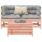 Salon de jardin 3 pcs bois massif sapin de douglasCet ensemble de salon de jardin en bois avec un design à lattes sera un excellent complément à votre jardin, patio ou terrasse pour profiter d'un moment agréable avec votre famille ou vos amis. Matériau robuste et durable : le bois de sapin de douglas est connu pour sa résistance et sa durabilité. Sa couleur brun rougeâtre riche et ses grains uniques dégagent une ambiance chaleureuse et naturelle. Sa stabilité et sa résistance aux intempéries sont idéales pour la fabrication de meubles d'intérieur et d'extérieur. Bien ventilé et prévention de l'accumulation d'eau : la conception à lattes favorise une circulation optimale de l'air et empêche efficacement l'accumulation d'eau, assurant ainsi une assise sèche et confortable. Utilisation polyvalente : le repose-pied de jardin peut non seulement être utilisé pour s'asseoir ou se détendre, mais il peut également être utilisé comme table basse pour contenir vos boissons, votre nourriture et d'autres décorations. Conception modulaire : cet ensemble de meubles d'extérieur a une conception modulaire, ce qui le rend complètement flexible et facile à déplacer, afin que vous puissiez créer un agencement de meubles d'extérieur personnalisé. Bon à savoir :Pour que vos meubles d'extérieur restent beaux, nous vous recommandons de les protéger avec une housse imperméable. Maximum 110 kg par siège.