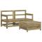 Salon de jardin 3 pcs bois de pin imprégnéCet ensemble de salon de jardin en bois avec un design à lattes sera un excellent complément à votre jardin, patio ou terrasse pour profiter d'un moment agréable avec votre famille ou vos amis. Matériau robuste et durable : le bois de pin massif est connu pour sa résistance et sa durabilité. Ses grains droits et ses noeuds distinctifs contribuent à son charme rustique. Il a été imprégné avec une solution de conservation et a subi un traitement en autoclave, ce qui renforce sa résistance à la pourriture et aux intempéries. Bien ventilé et prévention de l'accumulation d'eau : la conception à lattes favorise une circulation optimale de l'air et empêche efficacement l'accumulation d'eau, assurant ainsi une assise sèche et confortable. Utilisation polyvalente : le repose-pied de jardin peut non seulement être utilisé pour s'asseoir ou se détendre, mais il peut également être utilisé comme table basse pour contenir vos boissons, votre nourriture et d'autres décorations. Conception modulaire : cet ensemble de meubles d'extérieur a une conception modulaire, ce qui le rend complètement flexible et facile à déplacer, afin que vous puissiez créer un agencement de meubles d'extérieur personnalisé. Bon à savoir :Pour que vos meubles d'extérieur restent beaux, nous vous recommandons de les protéger avec une housse imperméable. Maximum 110 kg par siège.