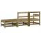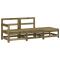 Salon de jardin 3 pcs bois de pin imprégnéCet ensemble de salon de jardin en bois avec un design à lattes sera un excellent complément à votre jardin, patio ou terrasse pour profiter d'un moment agréable avec votre famille ou vos amis. Bois imprégné : le bois de pin massif est un matériau naturel magnifique. Le bois de pin a un grain droit et les noeuds lui confèrent un aspect rustique caractéristique. L'imprégnation est un processus de conservation réalisé à l'aide d'autoclaves. Le traitement sous pression augmente la résistance à la pourriture et aux intempéries. Cadre robuste et stable : les cadres en bois rendent l'ensemble de salon robuste et stable pour une utilisation quotidienne à l'extérieur. Expérience d'assise confortable : les dossiers et les accoudoirs ajoutent un confort d'assise supplémentaire à l'ensemble de mobilier de jardin. Conception modulaire : l'ensemble de meubles d'extérieur est flexible et facile à déplacer, vous pouvez le combiner avec d'autres segments modulaires dans notre boutique en ligne pour créer vos propres configurations d'ensemble de salon de jardin ! Bon à savoir : Pour que vos meubles d'extérieur restent beaux, nous vous recommandons de les protéger avec une housse imperméable. Maximum 110 kg par siège. ,