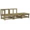 Salon de jardin 3 pcs bois de pin imprégnéCet ensemble de salon de jardin en bois avec un design à lattes sera un excellent complément à votre jardin, patio ou terrasse pour profiter d'un moment agréable avec votre famille ou vos amis. Bois imprégné : le bois de pin massif est un matériau naturel magnifique. Le bois de pin a un grain droit et les noeuds lui confèrent un aspect rustique caractéristique. L'imprégnation est un processus de conservation réalisé à l'aide d'autoclaves. Le traitement sous pression augmente la résistance à la pourriture et aux intempéries. Cadre robuste et stable : le cadre en bois rend l'ensemble de salon robuste et stable pour une utilisation quotidienne à l'extérieur. Expérience d'assise confortable : le dossier et l'accoudoir ajoutent un confort d'assise supplémentaire à l'ensemble de mobilier de jardin. Design modulaire : l'ensemble de salon d'extérieur est flexible et facile à déplacer. Vous pouvez le combiner avec d'autres segments modulaires disponibles dans le menu déroulant pour créer vos propres configurations de salon de jardin ! Bon à savoir : Pour que vos meubles d'extérieur restent beaux, nous vous recommandons de les protéger avec une housse imperméable. Maximum 110 kg par siège. ,