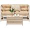 Salon de jardin 3 pcs bois de pin massifCet ensemble de salon de jardin en bois avec un design à lattes sera un excellent complément à votre jardin, patio ou terrasse pour profiter d'un moment agréable avec votre famille ou vos amis. Matériau robuste et durable : le bois de pin massif est connu pour sa résistance et sa durabilité. Ses grains droits et ses noeuds distinctifs contribuent à son charme rustique. Bien ventilé et prévention de l'accumulation d'eau : la conception à lattes favorise une circulation optimale de l'air et empêche efficacement l'accumulation d'eau, assurant ainsi une assise sèche et confortable. Utilisation polyvalente : le repose-pied de jardin peut non seulement être utilisé pour s'asseoir ou se détendre, mais il peut également être utilisé comme table basse pour contenir vos boissons, votre nourriture et d'autres décorations. Conception modulaire : cet ensemble de meubles d'extérieur a une conception modulaire, ce qui le rend complètement flexible et facile à déplacer, afin que vous puissiez créer un agencement de meubles d'extérieur personnalisé. Bon à savoir : Pour que vos meubles d'extérieur restent beaux, nous vous recommandons de les protéger avec une housse imperméable. Maximum 110 kg par siège.