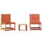 Salon de jardin 3 pcs cire marron bois de pin massifCet ensemble de salon de jardin en bois a un design élégant et constitue un excellent choix pour vous détendre et profiter du jardin ou du patio. Bois de pin massif : l'ensemble de salon d'extérieur est fabriqué en bois de pin massif pour plus de robustesse et de stabilité. Le bois de pin solide est un beau matériau naturel. Le bois de pin a un grain droit et les noeuds donnent au matériau son aspect caractéristique et rustique. Expérience d'assise confortable : doté d'un dossier, le salon de jardin vous offre un confort optimal. Design à lattes : le design à lattes du meuble en bois empêche l'accumulation de l'eau, ce qui permet de garder le siège au sec et empêchant la pourriture indésirable. Nombreuses applications : le siège de jardin est parfait pour tout porche avant, patio, arrière-cour, pelouse, jardin, etc. Bon à savoir : Pour que vos meubles d'extérieur restent beaux, nous vous recommandons de les protéger avec une housse imperméable. Maximum 110 kg par siège. ,