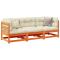 Salon de jardin 3 pcs cire marron bois de pin massifCet ensemble de canapés de jardin est le complément parfait de votre arrière-cour, terrasse ou patio, offrant un espace confortable et accueillant pour discuter avec la famille et les amis ou simplement se détendre et profiter de l'extérieur. Matériau robuste et durable : le bois de pin massif est connu pour sa résistance et sa durabilité. Ses grains droits et ses noeuds distinctifs contribuent à son charme rustique. Bien ventilé et prévention de l'accumulation d'eau : la conception à lattes favorise une circulation optimale de l'air et empêche efficacement l'accumulation d'eau, assurant ainsi une assise sèche et confortable. Conception modulaire : cet ensemble de meubles d'extérieur a une conception modulaire, ce qui le rend complètement flexible et facile à déplacer, afin que vous puissiez créer un agencement de meubles d'extérieur personnalisé. Bon à savoir :Pour que vos meubles d'extérieur restent beaux, nous vous recommandons de les protéger avec une housse imperméable. Maximum 110 kg par siège.